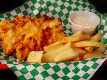 Golden crisp tenders served with fries.