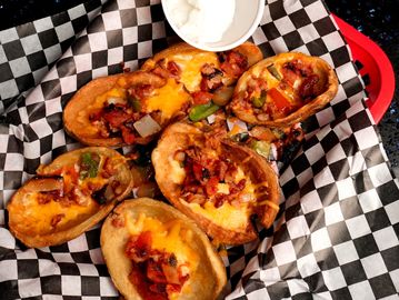 Cheese, peppers, onions, tomatoes, jalepenos, bacon bits, side of sour cream.
