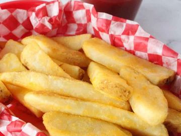 Golden crisp steak-cut fries.