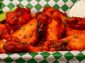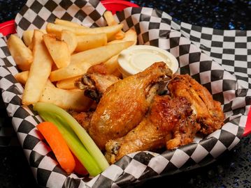 One (1 lb.), approximately 6-8 wings. Add side of fries $3.95.